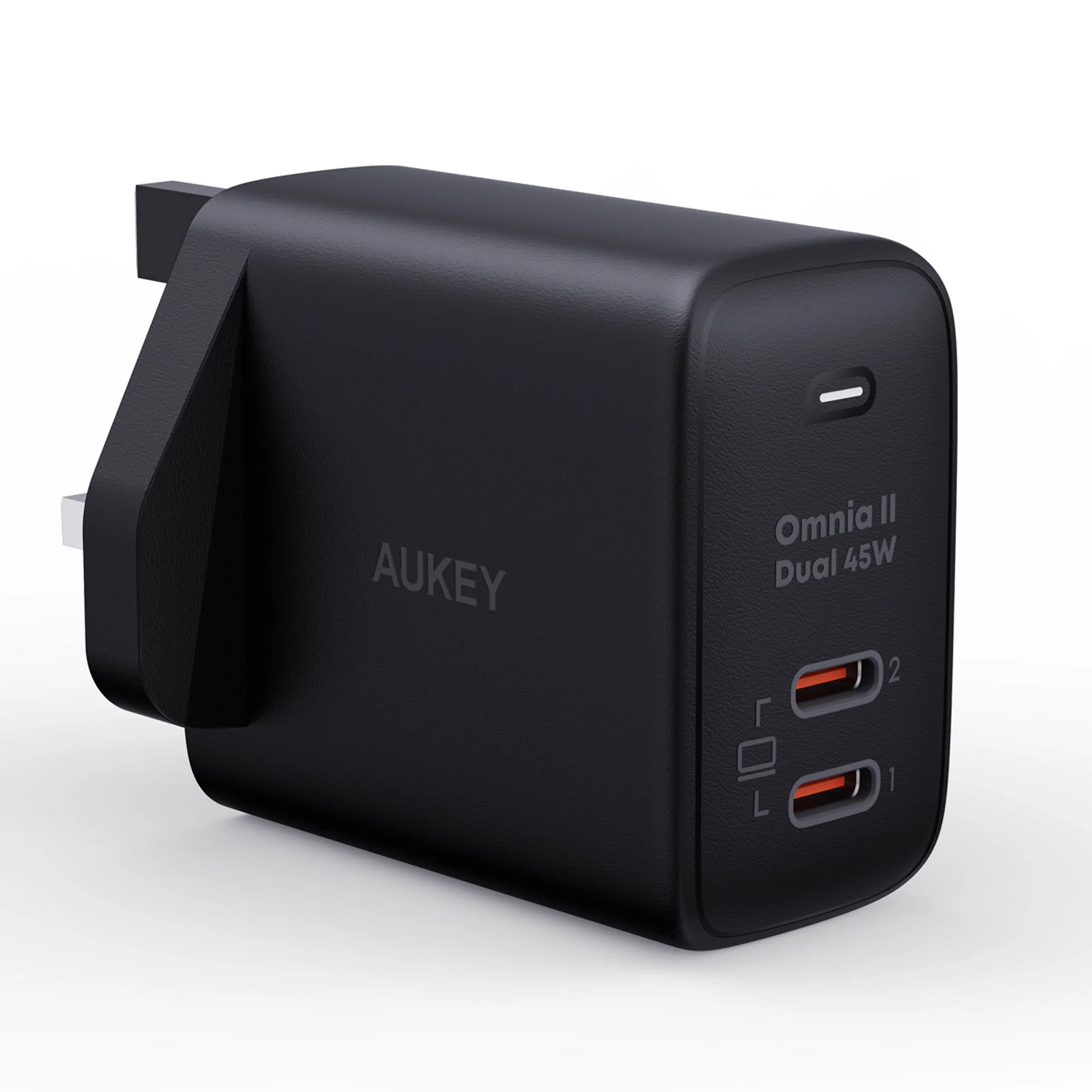 Aukey PA-B4T Omnia ll Dual-Port USB-C 45W PD Wall Charger with GaN Power Technology